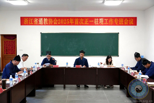 9月17日,浙江省道教协会2025年正一驻观工作专班会议在东阳太清观召开。省民宗委宗教一处副处长李蕾,省道协会长施清纯,副会长陈大慧、陆大源,秘书长周军,各市专班组成员参加会议。会议由省道协副秘书长徐大丰主持。