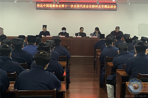 会议传达学习了中共中央政治局常委、全国政协主席王沪宁会见中国道教协会领导班子成员的讲话精神和中央统战部副部长、国家宗教事务局局长段毅君讲话精神以及中国道教协会第十一次全国代表会议情况。各部室负责人分别总结了本学期教育教学、学生管理、安全管理、图书借阅等情况。