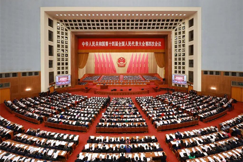 第十四届全国人民代表大会第四次会议5日上午在北京人民大会堂开幕。全国人大代表肩负人民重托出席大会,履行宪法和法律赋予的神圣职责。