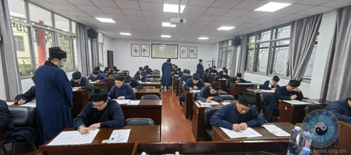 考试严格按照《宗教教职人员管理办法》、《道教教职人员认定管理办法》及《湖南省道教教职人员认定管理办法》等组织实施,重点考核参考人员对宗教政策法规、道教基础知识、道教经典的掌握程度,旨在严把教职人员入口关,确保认定人员政治合格、信仰纯正、道风优良,具有良好道学素养。考试期间,全体监考人员恪尽职守,严格执行考试纪律,确保考试全过程规范有序、公平公正。