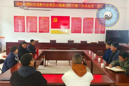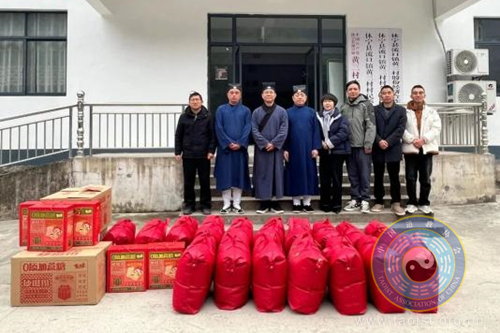 2024年12月26日,齐云山道教协会会长邓光辉道长、理事王培林道长及善信弟子等一行到休宁县流口镇黄三村开展“寒冬送温暖”敬老爱老慰问活动,为村里80周岁以上老人送去慰问品,送去冬季的温暖祝福。