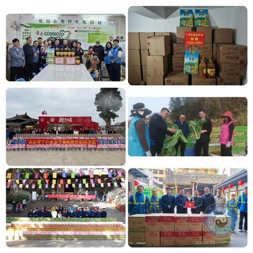 为进一步做好慈善公益事业,弘扬道教“齐同慈爱,济世利人”的慈善理念,广州市道教界积极开展新春慈善慰问活动,以实际行动助力“百千万工程”。广州市道教协会积极帮扶湛江市雷州市唐家镇,采购油、米等慰问品,捐赠给贵州省毕节市宗教活动场所及广州市越秀区珠光街道困难群众。三元宫、仁威祖庙组团帮扶从化吕田村,捐赠蔬菜。三元宫会同六榕街道举行2025年“迎新春、送温暖、献爱心”慰问活动,慰问环卫工人及困难群众,并走访象冈山社区独居老人。都城隍庙向北京街道和大塘街道捐赠米和油。赤松宫开展“乙巳年春节善信敬老慰问活动”,向大岭村村民及老人赠送米、油等生活物资。白云仙馆联合敏柔集团开展“登峰街2025年新春慰问活动”,慰问街道困难群众。
