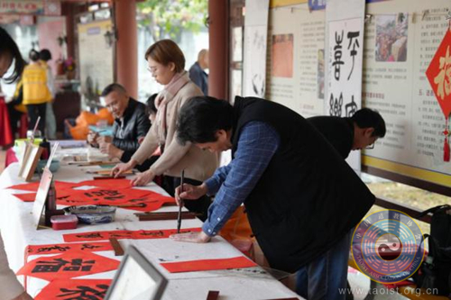 各场所始终践行绿美生态发展理念,结合已有的绿植和盆栽,精心在场所内增设年花、年桔、春联、灯笼、彩旗等布置,为道教活动场所清幽自然的绿美氛围注入了广府特色年味。为传承并大力弘扬中华优秀传统文化,各场所纷纷举行丰富多彩的迎春送福活动。如三元宫协办“古风墨韵送新春,福满六榕情意浓”——六榕街2025年迎春送福活动;纯阳观特别邀请梅社书画院的书画家,为公众撰写福字斗方与对联;都城隍庙、黄大仙祠、赤松宫、大仙庙举办迎春接福、慈善挥毫、赠福写春联活动,获得市民群众的广泛喜爱。