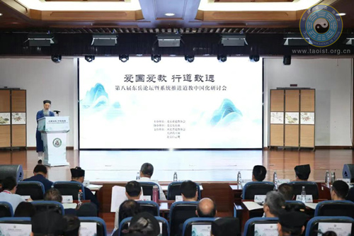 2025年9月20日,北京市道教协会举行“爱国爱教·行道致远”第八届东岳论坛暨系统推进道教中国化研讨会。中国道教协会会长李光富道长,副会长孟至岭道长、袁志鸿道长,北京市委统战部副部长、市民族宗教委主任李新,市人大民宗侨外委主任潘临珠,市政协民族和宗教委主任钟百利,市委统战部副部长王斌,中国社会科学院世界宗教研究所所长郑筱筠,市民族宗教委副主任丁希松,西城区委统战部副部长、区民宗办主任李婕,市道协会长李信军道长,河北省道协副秘书长于宗石道长,天津道教界代表及北京市伊斯兰教协会会长杨冠军阿訇等出席开幕式。来自京津冀三地的专家学者、教职人员及信众、书画家等300余人参加活动。