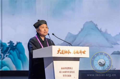 龙毅副主任充分肯定了湖南省道教协会40 年来在省委、省政府坚强领导下取得的各项成就。她强调,湖南道教界要进一步强化政治引领,筑牢道教健康传承的思想根基;要赓续湖湘文脉,彰显我国道教中国化的底色成色;要全面从严治教,树立道教教风纯正的良好形象,积极引导道教与社会主义社会相适应。