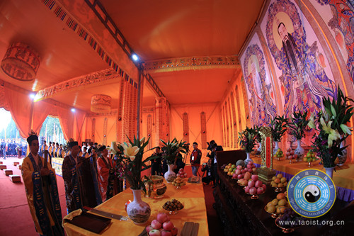 原国家宗教局副局长陈宗荣、一司司长王健,四川省委统战部副部长、省民宗委主任张富国,成都市政府副秘书长刘兴军,四川省民宗委副主任杨伯明、刘文芝,成都市委统战部副部长、民宗局局长田野,都江堰市人大常委会主任王聪;都江堰市市委副书记李长文,中国道教协会副会长兼秘书长张凤林道长,中国道教协会副会长黄信阳道长,中国道协副会长、四川省道协会长唐诚青道长,中国道协副秘书长、四川省道协副会长、成都市道协会长、青城山道协会长张明心道长,香港道教联合会主席梁德华,台湾松山慈惠堂堂主郭叶子以及中国道教协会副会长、副秘书长、常务理事,专家学者,各界人士,来自美国、新加坡等国家和香港、台湾地区的道教界代表等出席了开幕典礼。