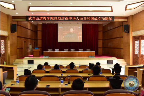 2019年是中华人民共和国成立70周年,湖北省道教协会带领全省道众,开展庆祝新中国成立70周年主题宣传教育活动,先后举行了湖北省道教界庆祝中华人民共和国成立70周年演讲比赛、学习贯彻习近平新时代中国特色社会主义思想培训班、全省道教界开展“同升国旗、齐唱国歌、为国祈福”爱国主义教育活动、全省道教界收听收看新中国成立70周年庆祝大会和阅兵仪式等系列活动,以道教特有的方式表达对祖国的热爱,为共和国70华诞献礼,为实现中华民族伟大复兴的中国梦凝心聚力,贡献道教界的力量。