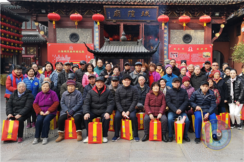 当天下午,城隍庙慈爱功德会邀请了数十位豫园街道孤寡老人到城隍庙参加联谊活动。著名青年滑稽演员、城隍庙慈爱功德会副理事长陈靓率先登台,为老人们表演了精心准备的节目,获得满堂喝彩,其他会员们也演绎了多个沪剧、合唱等节目,现场洋溢着欢乐温馨的气氛。功德会还向每位老人送上500元新春慰问金。