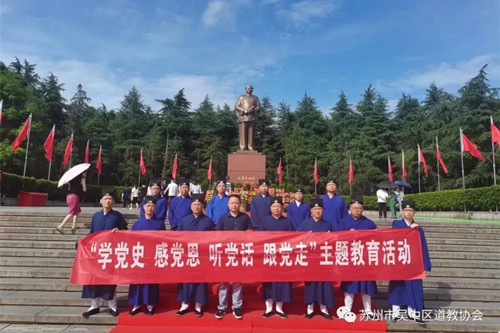 百年华诞恰是风华正茂,2021年是中国共产党建党一百周年,苏州市吴中区道教界为庆祝中国共产党成立一百周年,积极开展爱国主义教育和“四史”学习。6月14日至17日,吴中区道教协会组织全区道教骨干14人赴湖南韶山开展“学党史、感党恩、听党话、跟党走”主题教育活动,旨在激发全区道教界爱党爱国情怀,坚定跟党走中国特色社会主义道路的信念和决心。吴中区民宗局领导受邀随团指导。