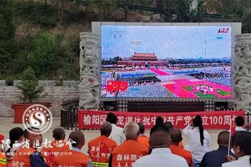 榆林黑龙潭道观道众、信众观看庆祝中国共产党成立100周年大会直播