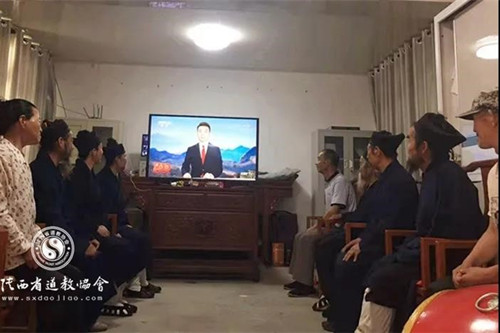 汉中青龙观道众观看庆祝中国共产党成立100周年大会直播