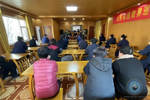 2021年12月2日,淄博市道教协会常务理事扩大会议暨党的十九届六中全会通报学习班在九圣阁道观开班。市委统战部刘菡、王金归等有关人员出席会议。市道协常务理事以上人员参加会议。淄博市道教协会会长尹清钧道长主持会议。