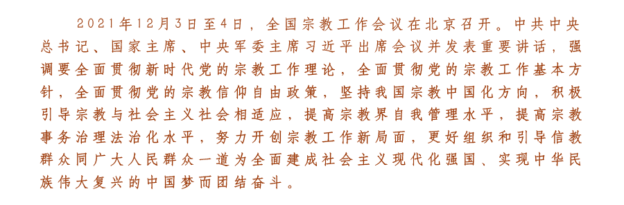 习近平在全国宗教工作会议上强调 坚持我国宗教中国化方向 积极引导宗教与社会主义社会相适应 李克强主持 栗战书王沪宁赵乐际韩正出席 汪洋讲话 时隔五年再开全国宗教工作会议,习近平为何一再强调这几个问题? 如何做好宗教工作,习近平强调九个“必须” 谈宗教工作,习近平这些话很深刻 坚持我国宗教中国化方向,总书记对此为何如此重视 习近平论宗教工作 习近平总书记在全国宗教工作会议上的重要讲话引发热烈反响 怎样深入推进我国宗教中国化?习近平这样说 做好新时代宗教工作,这是关键 做好宗教工作,为实现中国梦凝聚力量——党的十八大以来宗教工作取得积极成效 全国性宗教团体负责人热议习近平总书记在全国宗教工作会议上的重要讲话 统战、宗教工作部门负责人和专家学者热议习近平总书记在全国宗教工作会议上的重要讲话 李光富:把党中央的决策部署落到实处,不断提升新时代道教工作新境界 中国道教协会召开专题会议 传达学习全国宗教工作会议精神 中国道教学院组织全体师生学习全国宗教工作会议精神 中国道教协会组织直属宫观学习全国宗教工作会议精神 全国性宗教团体联席会议学习贯彻全国宗教工作会议精神 北京市民族宗教事务委员会关于开展互联网宗教... 江苏省民族宗教事务委员会关于开展互联网宗教... 山东省民族宗教事务委员会关于办理互联网宗教... 浙江省民族宗教事务委员会关于开展互联网宗教... 江西省民族宗教事务局关于开展互联网宗教信息... 吉林省宗教事务局发布《关于举办互联网宗教信息... 福建省民族与宗教事务厅关于开展互联网宗教信息... 贵州省道教协会组织学习《互联网宗教信息服务管... 广东省民族宗教委关于开展互联网宗教信息服务许... 人民日报评论员:全面贯彻新时代党的宗教工作理论 ——论学习贯彻习近平总书记在全国宗教工作会议上重要讲话 人民日报评论员:坚持我国宗教的中国化方向——论学习贯彻习近平总书记在全国宗教工作会议上重要讲话 人民日报评论员:积极引导宗教与社会主义社会相适应——论学习贯彻习近平总书记在全国宗教工作会议上重要讲话 光明日报评论员:积极引导宗教与社会主义社会相适应——深入学习贯彻习近平总书记在全国宗教工作会议上的重要讲话精神之一 光明日报评论员:深入推进我国宗教中国化——深入学习贯彻习近平总书记在全国宗教工作会议上的重要讲话精神之二 光明日报评论员:不断开创党的宗教工作新局面——深入学习贯彻习近平总书记在全国宗教工作会议上的重要讲话精神之三 郑筱筠:为何说坚持我国宗教中国化方向,兼具了历史必然与文化创新? 张志刚:如何从世界宗教史规律理解“宗教中国化”? 蒲长春:努力建设新时代马克思主义宗教学 郑筱筠:深刻认识宗教工作在党和国家工作全局中的特殊重要性——学习贯彻落实全国宗教工作会议精神的体会 张训谋:认真学习贯彻习近平总书记全国宗教工作会议重要讲话精神,做好宗教研究工作 北京|北京市道教协会召开第四届常务理事... 上海|上海道教界积极学习全国宗教工作会... 上海|浦东道协传达学习全国宗教工作会议... 黑龙江|黑龙江省道教界学习贯彻全国宗教... 吉林|吉林市道教协会举办学习贯彻习近平... 甘肃|甘肃省道教协会学习全国宗教工作会... 甘肃|兰州市道教协会召开学习贯彻全国宗... 山东|青岛市道教界深入学习习近平总书记... 山东|临清市道教协会组织学习习近平总书... 山东|济宁市道教协会召开学习贯彻全国宗... 山东|泰安道教界集体学习全国宗教工作会... 安徽|齐云山道教协会组织全体道众学习全... 安徽|宿松县道教协会组织学习全国宗教工... 陕西|陕西省道教界学习全国宗教工作会议... 陕西|陕西道教学院学习贯彻习近平总书记... 陕西|西安市道教协会学习全国宗教工作会... 陕西|西安八仙宫组织全体道职工学习全国... 陕西|陇县道教协会组织学习全国宗教工作... 陕西|榆林市榆阳区道协传达学习全国宗教... 陕西|紫阳县真人宫传达学习全国宗教工作... 河北|石家庄市道教协会学习贯彻习近平总... 湖北|湖北道教界积极学习宣传贯彻全国宗... 湖北|湖北省道教协会推进学习贯彻全国宗... 湖北|武当山道教学院积极学习习近平总书... 湖北|赤壁市道教协会传达学习党的十九届... 山西|太原市道教界积极学习贯彻全国宗教... 山西|恒山道教协会第二届会员大会第二次... 山西|朔州市道教协会传达学习全国宗教工... 山西|太原市万柏林区道教协会学习习近平... 河南|河南省道教协会召开学习贯彻全国宗... 河南|河南中岳庙组织学习全国宗教工作会... 江苏|南京市道教界热议全国宗教工作会议... 江苏|镇江市道协组织学习习近平总书记在... 江苏|常州市道协组织学习全国宗教工作会... 江苏|淮安市道协组织学习习近平总书记在... 江苏|苏州城隍庙传达学习全国宗教工作会... 江苏|常州市新北区道教活动场所学习全国... 浙江|浙江道教学院深入学习贯彻全国宗教... 浙江|德清县道教协会组织学习全国宗教工... 广东|广东省道教协会召开2021年第三次会... 江西|龙虎山道教协会召开全国宗教工作会... 江西|瑞金市道教协会召开学习全国宗教工... 江西|宜春崇道宫积极学习贯彻全国宗教工... 广西|广西道教协会召开座谈会 学习习近... 广