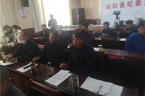 2021年 12月6日,宿松县道协组织部分教职人员及信众代表学习习近平总书记在全国宗教工作会议上的重要讲话和党的十九届六中全会精神。宿松县委常委、组织部部长、统战部部长鲁长江,县委统战部常务副部长、宗教局局长夏仕能等应邀出席。