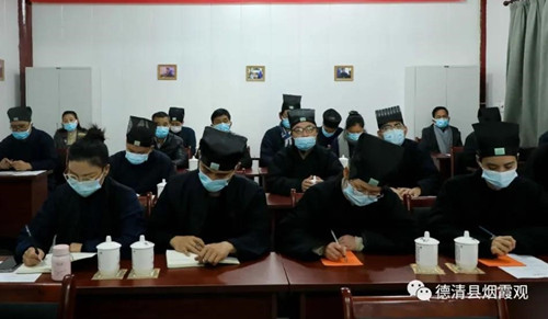 县道协会长陈金伟道长传达了全国宗教工作会议精神,并要求大家要学有所获、学以致用、立定本职,努力为德清县的经济社会发展作出应有的贡献。县委党校办公室主任陈董骄讲解了党的十九届六中全会精神。县道协副会长刘崇明部署了“疫情防控不减压”、春节既临安保工作。