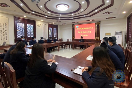 2021年12月12日,苏州城隍庙召开会议,传达学习全国宗教工作会议精神,全体道职员工参加。会议由管委会副主任葛永宗道长主持。