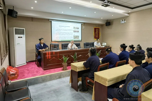 2022年6月10日,中岳庙组织全体道众认真学习全国性宗教团体联合发出的《关于崇俭戒奢的共同倡议》。中岳庙方丈黄至杰做开示。中岳庙监院刘理伟提出教育学习计划。 (来源:河南中岳庙)