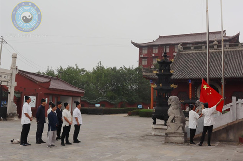 10月1日,为热烈庆祝中华人民共和国成立73周年,镇江市润州道院举行“迎国庆,升国旗”活动。 上午8点,升国旗仪式正式开始,在雄壮的《义勇军进行曲》中,五星红旗冉冉升起,润州道院全体教职员工面向国旗肃然而立,行注目礼,高唱国歌,以昂扬向上的精神风貌向新中国华诞献礼,衷心祝愿伟大的祖国繁荣昌盛、国泰民安! (来源:镇江市道教协会)