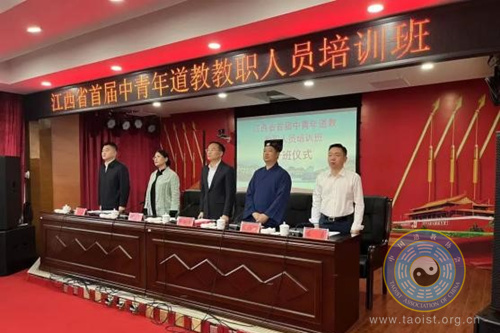 10月24日,江西省首届中青年道教教职人员培训班在瑞金干部学院开班。江西省民族宗教事务局党组成员、副局长李新华,江西瑞金干部学院副院长袁勇,江西省宗教院校教育服务中心主任庄养谷,赣州市委统战部副部长、市民宗局局长黄海,中国道教协会副秘书长、江西省道教协会会长李绍华,江西省道教协会秘书长陈雅岚等领导嘉宾出席开班仪式。来自全省各地的103名中青年道教教职人员参加培训。